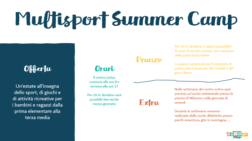 Il progetto San Carlo Village, rivolto alle alunne e agli alunni della scuola primaria e secondaria di primo grado è volto a contrastare l’isolamento che i ragazzi delle attuali generazioni vivono al termine dell’anno scolastico o alla conclusione dell’orario curriculare. Per disincentivare la dispersione, per creare ambienti di apprendimento inclusivi e per favorire la socializzazione in un contesto meno strutturato rispetto all’ora di lezione, San Carlo Village promuove attività ludico motorie e sportive e di potenziamento dell’apprendimento. La scuola diventa così quell’organismo in grado di creare un ambiente di insegnamento e di apprendimento funzionale non solo al potenziamento delle conoscenze didattiche dei ragazzi, ma mira a potenziare le soft skills e a una crescita globale della persona, con particolare riferimento alla parità di genere.